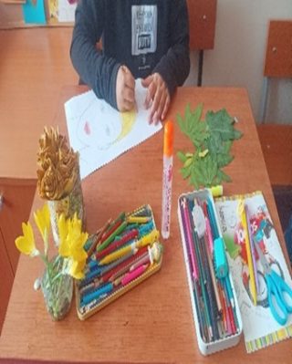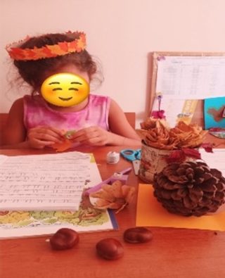 Вдъхновени от есента, учениците от 7 А ресурсна група подготвиха изложба под мотото „Златна есен при нас е дошла” като внесоха много настроение и красота в ресурсния кабинет . Създадоха есенни „шедьоври” от листа, кестени, ,шишарки, жълъди и други природни материали. Кабинета грейна в пъстри есенни цветове. Вложена бе много емоция при изработването на рисунки и пана дори от най-малките ученици .