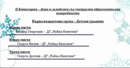 През декември -Теодор Георгие и Георги Делчев от 4-та група и Георги Янчев от 2-ра група на ДГ”Райна Княгиня”-Димитровград